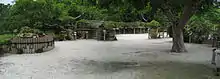 The Roji-en Japanese Gardens were designed to complement the museum. The six gardens making up Roji-en are inspired by famous garden styles throughout Japan's history.[1] They were designed by Hoichi Kurisu and completed in 2001.[1] The six historical gardens are as follows: Shinden Garden, Paradise Garden, Early Rock Garden, Karesansui Garden, Hiraniwa Garden, and Modern Romantic Garden. The Shinden Garden is inspired by the gardens of the Heian period of the 9th–12th centuries. During this time Japanese nobility used Chinese garden designs that featured lakes and islands; this style of garden was usually viewed by boat. The Paradise Garden comes from the Kamakura and Muromachi periods. The gardens were designed as temples to the Buddha and represented Buddhist Heaven. The Early Rock Garden is also from the Muromachi period. This style of gardens was influenced by Chinese landscape art and the early concept of Zen. The Muromachi period Karesansui gardens are in true Zen style. These gardens were designed not to be walked through, but instead to be viewed from temples and reflected on. The "dry landscape" styles was almost empty of plants, instead having rocks and gravel. The Edo period was known for the Hiraniwa Flat Garden style. These gardens were hybrids of the late rock garden and tea garden. This garden style is known for its accents, such as pagodas, lanterns, and stepping stones. The last historical garden featured at Morikami is the Modern Romantic Garden. This garden originated during the Meiji period. Naturalism and Western influences were what spurred the creation of this garden style.[7]