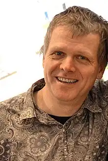 Moritz Götze is the son of Wasja and Inge Götze. His father Wasja was one artists of the counter-culture movement in East Germany.[1][2][3] Moritz Götze grew up in Halle. In the 1980s he worked as carpenter, singer and guitar player in punk bands and organized punk festivals, as the East German authorities had blocked his development as an artist.[4][5] Between 1985 and 1995 he ran a workshop, in which he produced posters and silkscreen prints. He held an academic appointment as a lecturer at the University of Art and Design Halle in 1991-194 and was a visiting scholar at the École Nationale Supérieure des Beaux-Arts in Paris in 1994. Götze works with his spouse and fellow artist Grita Götze in Halle, where he curates exhibitions, supports young musicians and is involved in heritage conservation. Together with Peter Gerlach and Simone Trieder he founded in 2006 the publishing house Hasenverlag in Halle/Saale, which specializes in art books and the cultural history of the region.[6]