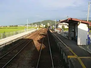 Moriyama Station (森山駅, Moriyama-eki) is a train station located in Moriyama-machi, Isahaya, Nagasaki Prefecture. The station is serviced by Shimabara Railway and is a part of the Shimabara Railway Line.