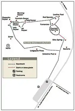 ![]() Map of the Fountain Paint Pots group showing the location of Morning Geyser | |
