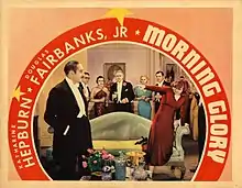 Morning Glory is a 1933 American Pre-Code drama film which tells the story of an eager would-be actress and her journey to stardom, and her gains and losses. The picture stars Katharine Hepburn, Douglas Fairbanks Jr., and Adolphe Menjou, was adapted by Howard J. Green from a then-unproduced stage play of the same name[2] by Zoë Akins, and was directed by Lowell Sherman. Hepburn won her first Academy Award for Best Actress for this movie. Morning Glory was remade in 1958 under the title Stage Struck.