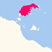 The town of Gununa is located on the south-western end of the island[4] overlooking the Appel Channel (16.682°S 139.192°E) which separates it from Denham Island (16.7144°S 139.1597°E).[5][6][7].