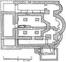 The village was inhabited from the 5th to 7th centuries, when it was abandoned after the 7th century. A church dating from the 5th century was discovered on this location, with a tomb as its centre. With its marble flooring and pillars and capitals decorated with medieval motifs, it has been concluded that this church represents a great example of the highest technical level of construction and decoration.