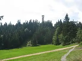 East of the summit is located a 30-metre-high (98 ft) observation tower designed by Mario Botta.
