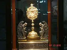 The relic is publicly exposed every Saturday during the anticipated mass, guarded by the knights of Saint Jerome. While the kissing of the relic is done every last Saturday of the month. After two years, another relic was given, in 2007 to the parish again as a gift from the main chaplain of the church of St. Jerome in Rome, this time bigger. This relic is now buried on top of the table of the main altar which is being kissed by the priest every time there is a mass.