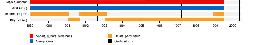 - Dana Colley – baritone sax, tenor sax, double sax, triangle, backing vocals (1989–1999)