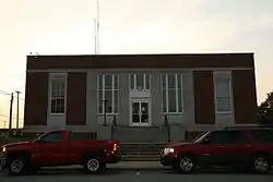 The former Morrilton Post Office is a historic post office building at 117 North Division Street in downtown Morrilton, Arkansas. It is a single-story masonry structure, built of brick and limestone in a simplified Art Deco style. Its facade is divided into five bays, the outer two separated by brick piers from the inner three. The inner three are articulated by limestone pilasters, and feature large multipane windows and the main entrance. The interior features a mural entitled "Men at Rest" by Richard Sargent, painted in the 1930s as part of a federal works project.[2]