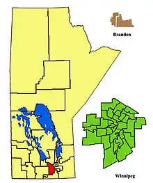 | Census subdivision(s) | Cartier, Hanover, Headingley, Macdonald, Morris (RM), Morris (Town), Niverville, Ritchot, St. François Xavier |