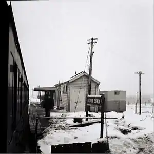 By 1926, Morris Motors, based in Cowley since 1913, employed some 4,000 workers on their plant which covered some 80 acres (320,000 m2) and produced 1,000 cars per week. Morris decided to concentrate the packing of cars for export at Cowley, the bulk of which would be moved to port by rail. Two sidings were installed in March 1926 to serve the adjacent Pressed Steel Company factory and five more were added in July 1928 for Morris Motors.[8] Around the same time, Morris proposed to the GWR to open a passenger and goods station on the site of Garsington Bridge Halt and the new Morris Cowley station subsequently opened to passengers on 24 September 1928 and to goods on 10 December 1928.[9] A new signal box was opened in October 1928 to control the sidings. Basic passenger facilities were provided: a single timber platform 400 feet (120 m) and 12 feet (3.7 m) wide, together with a parcels and booking office, booking hall and toilets. Access to the station was had by a footway leading up from Cowley Road.[10] As production at the Cowley plant increased, so the freight facilities were extended. Car trains ran to Brentford Dock for export, reversing at Kennington junction, whilst a daily train ran from Bordesley. Special services were laid on for the workers, beginning with a through train that departed Banbury at 6:00 am, arriving at Cowley at 7:00 am. The return working left Cowley at 5:08 pm and reached Banbury at 6:06 pm. On Saturdays, a service left Cowley at 12:10 pm and ran to Kingham where it connected with a Banbury train.[6]
