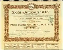 André Citroën became chairman of Mors in 1908 and restored the company's viability. In 1925, Citroën bought Mors outright and closed it down, using its factory for the production of his Citroën automobiles.[3]