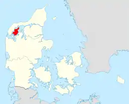 Mors or Morsø is an island in the shallow sound called Limfjorden within Denmark's Jutland peninsula. It has an area of 367.3 km² and as of 1 January 2019, it had a population of 20,373.[1] The main town on the island is called Nykøbing Mors. Geologically Mors is unique. Like the neighbouring island of Fur, it is known for its deposits of diatomite, locally known as 'moler' (mo-clay).