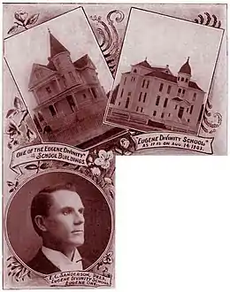 The school was founded as a divinity school in 1895 by Disciple of Christ preacher and educator Eugene Claremont Sanderson as the Eugene Divinity School (EDS). In 1908 it became Eugene Bible University; in 1930 that name changed to Eugene Bible College. After a merger with Spokane University in 1934, it became known as Northwest Christian College and then Northwest Christian University in 2008.[1][2] In 2020, it formally changed its named to Bushnell University, after James A. Bushnell, the first chairman of the university's board of trustees.[3]