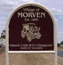 Morven commenced its existence as a Cobb and Co Staging Post. Morven Post Office opened on 1 September 1880.[2]