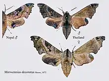 Morwennius is a monotypic moth genus in the family Sphingidae described by Alan Charles Cassidy, Michael G. Allen and Tony W. Harman in 2002.[2] Its only species, Morwennius decoratus, the ornamented hawkmoth, was described by Frederic Moore in 1872.[3]