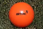 In informal play, players can use any type of ball, though a soccer ball is usually used. In more formal play, two types of balls are manufactured for use. An outdoor ball is usually the color blue, while the indoor ball is the color orange.
