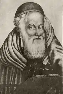 Moshe Teitelbaum (1759 – 17 July 1841) (Yiddish: משה טייטלבוים), also known as the Yismach Moshe, was the Rebbe of Ujhely (Sátoraljaújhely) in Hungary. According to Leopold Löw, he signed his name "Tamar", this being the Hebrew equivalent of Teitelbaum, which is the Yiddish for "date palm" (compare German "Dattelbaum").[1] An adherent of the Polish Hasidic rebbe Yaakov Yitzchak of Lublin as well as of Sholom Rokeach of Belz,[2] Teitelbaum was instrumental in bringing Hasidic Judaism to Hungary. Though initially opposed to Hassidism, after his son-in-law introduced him to Jacob Isaac Horowitz, he soon became an adherent.[3]