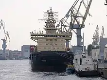 In July 2004, the Saint Petersburg-based Baltic Shipyard won an international tender for the construction of two 16-megawatt diesel-electric icebreakers for Rosmorport, a state-owned company established in 2003 to manage Russia's port infrastructure and operate its fleet of diesel-powered icebreakers.[4] Although the shipyard had built five Arktika-class nuclear-powered icebreakers in 1975–1992 and had the sixth under construction at the time, these would be the first non-nuclear icebreakers built on a Russian shipyard in over three decades and the first new icebreakers ordered following the dissolution of the Soviet Union.[8] While the state budget did not initially allocate funding for the new icebreakers, the construction was nonetheless set to begin already in 2004 and the lead ship was to be delivered by November 2006.[4]