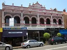 Mosman's shopping centre is located along Military Road, which features many boutiques, cafes and restaurants. The shopping centre extends from the intersection with Bradley's Head Road and Middle Head Road and continues north up past the intersection with Spit Road at Spit Junction. It continues for some distance along both Spit Road and Military Road and extends down some of the side streets. Mosman Council has identified the early 20th century shopping strip along Military Road as a conservation area. The awnings along the street were originally column-supported.[38] A small shopping mall called Bridgepoint is located at Spit Junction. The Military Road Conservation Area also includes the row of shops at 581-595 Military Road, on the southern side of Military Road between the Town Hall and the Library Walk shopping complex. These shops, built from 1900 to 1904, were designed by Henry Austin Wilshire, and are included on the NSW Heritage database.[39]
