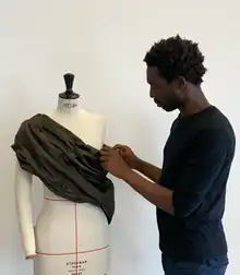 Although his mother and grandmother both practiced sewing,[3] Traoré did not develop a passion for fashion and sewing until high school. He had a "click moment" when he applied to Mod'Art International school. "In order to validate my admission to the school, I had to read a book about the history of art that seemed like gibberish to me. However, when I was sent to see the 'Juste des vêtements' exhibit by Yohji Yamamoto at the MAD, I was captivated by the freedom to create," he said.[4]