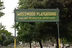 Mosswood Park is a 4-acre (16,000 m2) public park in Oakland, California, located on W MacArthur Boulevard between Webster Street and Broadway. Managed by the City of Oakland's Department of Parks and Recreation, it contains a community recreation center as well as extensive grassy lawns, picnic areas, children's play equipment, dog runs, tennis and basketball courts,[1] and baseball fields.