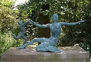 Mother and Child is a public artwork by the Estonian-British artist Dora Gordine, located at the Indianapolis Museum of Art (IMA), which is near downtown Indianapolis, Indiana. The cast bronze artwork was created in 1964 and portrays a woman kneeling beside a small child, both figures displaying joyful poses and expressions.