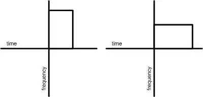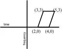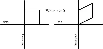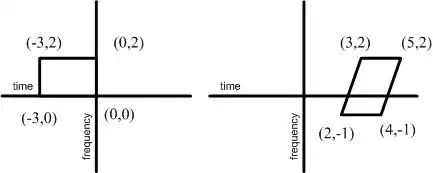 The following examples assume time in the horizontal axis versus frequency in the vertical axis. As a coincident, the following transformations happen to have the motion properties in the time-frequency distribution.