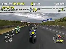 In Moto Racer World Tour, the player drives a motorcycle in races against opponents. A large portion of the game centers on the World Tour Championship game mode, which tasks the player with completing a series races against the AI.