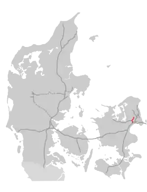 In November 2003, a majority in the Folketing agreed on a traffic package, which meant that the drafting of a decision-making basis for expanding the motorway from 4 to 6 lanes had to be initiated.[1] In July 2009, a significant part of the decision-making basis for a construction act was completed for approx. 4 km long stretch between Motorvejskrys Taastrup and the connecting facility between Motorring 4 and Frederikssund motorway.[2] The expansion was to be completed in about 5 years, of which the last 3 were construction work.[3] The motorway was laid out with an extra-wide central relief with trees, which should tie the forest landscape together across the motorway. Therefore, the expansion can be carried out by extension with tracks in the existing central rebate.[4]