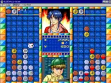 In 1996, Etona licensed Moujiya from Fujitsu and commissioned Racjin to make an arcade conversion.[2] This game, made from the ground up, featured a completely new cast of characters and different garbage block mechanics from the original, among other lesser changes.[8] Etona's version was then ported to the Sega Saturn and also to the PlayStation shortly thereafter, with the publishing being handled by Virgin Interactive.[6] In 1999, Hect would snatch up publishing rights for the PlayStation version and rerelease it under their Honkakuha de ¥1,300 Series budget label.[5]