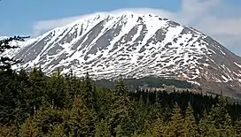 Mount Adair is a prominent 5,178-foot (1,578 m) double summit mountain located in the Kenai Mountains, on the Kenai Peninsula, in the U.S. state of Alaska. The east summit is higher than the 4,940-foot west peak.[4] The mountain is situated in Chugach National Forest, 6.8 mi (11 km) north of Mount Ascension, 7.2 mi (12 km) west of Andy Simons Mountain, and 17 mi (27 km) north of Seward, Alaska.[3] Precipitation runoff from the mountain drains into Kenai Lake. Mount Adair's local name was reported in 1951 by the U.S. Geological Survey.[3]
