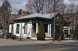The 1870 Mount Auburn Cemetery Reception House is an historic building that originally served as the reception house of Mount Auburn Cemetery in Cambridge, Massachusetts. The building is located at 583 Mount Auburn Street, across the street from the cemetery, and is no longer part of the cemetery. A new reception house was built on the cemetery grounds in 1896.[2]