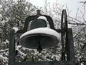 The school's bell with snow