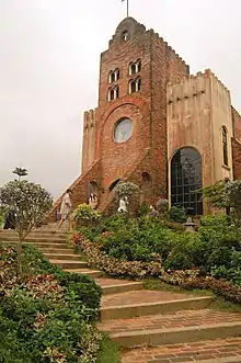 Mount Batulao is home to Caleruega, a major retreat center and popular wedding location that sits on 8 hectares (20 acres) of hilly landscape adjacent to the former Evercrest Golf Club. It was established by the Dominican Order in 1994 as the venue for seminars and retreats of the Dominican institutions in the Philippines.[29] The religious complex was named after the birthplace in Spain of the Dominican patron, Saint Dominic. Its famous landmark is a chapel perched on a hill, the Chapel of the Transfiguration of Jesus, that has become a favorite out-of-town wedding venue that sits only 150 people. The iconic chapel is surrounded by pine trees reminiscent of the Spanish town and has a statue of Risen Christ designed by Ben Hur Villanueva in its front lawn. The entire complex consists of 39 Catholic houses used as retreat houses, formation houses, seminaries and prayer houses.[29]