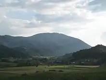 Boč, also called the Triglav of Slovene Styria ,[1] is a 978-metre-high (3,209 ft)[2] mountain in eastern Slovenia.[1] It belongs to the municipalities of Poljčane (the peak) and Rogaška Slatina (southern slope). Boč, which is among the southernmost extensions of the Karawanks mountain range,[1] is the central mountain of the Boč–Donatus Mountain Landscape Park. It has two peaks, which are five minutes apart.[1] At one peak, there are transmitters (restricted military area). In the other, a 20-metre (66 ft) lookout tower has stood since 1962.[1] The mountain, covered with forest and protected as a natural park, has a number of trails that vary in difficulty level and is also home to the protected Greater Pasque Flower (Pulsatilla grandis).[3] The plant grows in the vicinity of St. Nicholas Church (Parish of Kostrivnica) and the Hut Under Mt. Boč on the southern slope of Boč. A sculpture of the Greater Pasque Flower, work of the sculptor Franc Tobias from Razvanje, has been put on display on a small rise near its growing place.