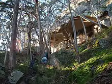 The main trees in the southern part of the forest are Messmate (Eucalyptus obliqua), Manna Gum (Eucalyptus viminalis), and Blue Gums (Eucalyptus globulus).[2] In the north, which is drier, there are Yellow Box (Eucalyptus melliodora), and Red Stringybark (Eucalyptus macrorhyncha).[1] There is also the rare Mount Cole Grevillea, Grevillea montis-cole.[2][3] On the high peaks there are groups of Snow Gums (Eucalyptus pauciflora).[1]