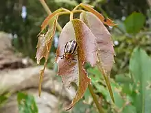 The flora is highly diverse due to the high rainfall and variety of volcanic soil types. Subtropical rainforest dominated by black and white booyong Argyrodendron spp. is prominent on basaltic soils while warm temperate rainforest that is dominated by coachwood, occurs on the poorer rhyolitic soils. Giant brush box are found to the east of the plateau and flooded gums may also be found in areas of basalt soils.[8] One small stand of cool temperate rainforest, dominated by Antarctic beech, is located at the Best of All Lookout just over the border in New South Wales. Some of the beech trees are 3,000 years old.[5] Remarkably the Springbrook leatherwood, a tree which grows to 25 m in height and is found only in warm temperate rainforest on Springbrook, was not discovered until 1993, by local botanist David Jinks.[10]