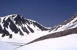 Mount Dana is a small stratovolcano of the Alaska Peninsula, United States, located northeast of Canoe Bay inlet at the head of Pavlof Bay. It was the source for a major eruption about 3840 years ago that produced a pyroclastic flow that filled valleys south and west of the volcano's crater and reached the sea at Canoe Bay.[1]