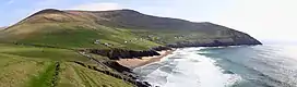 Mount Eagle summit can be reached with a medium walk from Ventry Harbour.[1] From the top of the mountain there is a good view of the neighbouring coast and the Blasket Islands.[5]