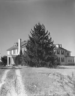 In 1789 Fairfax, by now a priest in the Episcopal Church, purchased 229.5 acres (0.929 km2) from Bennet and built Mount Eagle, where he lived from 1790 until his death in 1802.[2] Fairfax, a great friend of Washington, hosted Washington’s last meal away from Mount Vernon, on December 7, 1799.[3] After the death of his wife, Jane Donaldson Fairfax, on 1 July 1805, the balance of their property was distributed amongst their heirs. His eldest son, Thomas, was executor of the estate, and began leasing out Mount Eagle with the first advertisement appearing in the Alexandria Gazette in 1806, placed by his cousin John Herbert. Herbert had either bought the property or was acting as Thomas's agent. His half-sister, Anne, and her husband filed suit in 1807 for an accounting of the estate that dragged through the courts until 1829 when it was decided against them. Herbert placed another advertisement in 1811 and his brother, William Herbert, sold the estate to Walter Jenifer six years later. Jenifer had financial problems the following year and attempted to sell Mount Eagle, but could not do so as the deed had not been recorded and the property reverted to William Herbert. He sold it to George Mason VI in 1825, but he only lived there for a few years before moving to Gunston Hall, and was only able to intermittently lease it, possibly because of its small 40-acre (0.16 km2) size.[4]