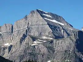 Mount Gould (9,557 ft (2,913 m)) is a peak on the Continental Divide in Glacier National Park, Montana, United States.[4] It is the highest point of the Garden Wall, a distinctive ridge of the Lewis Range. It is most notable for its huge, steep east face, which drops 4,000 ft (1,220 m) in only one-half mile (0.8 km). This face provides a backdrop to Grinnell Lake, and is often photographed.