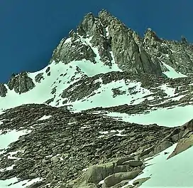 Mount Haeckel is a 13,424-foot (4,092 m) mountain summit located on the crest of the Sierra Nevada mountain range in northern California, United States.[3] It is situated on the shared boundary of Kings Canyon National Park with John Muir Wilderness, and along the common border of Fresno County with Inyo County. It is 21.5 miles (34.6 km) west of the community of Big Pine, 1.27 miles (2.04 km) south-southeast of Mount Darwin, and one mile north-northeast of Mount Fiske, which is the nearest higher neighbor. Mount Haeckel ranks as the 71st highest summit in California.[2]