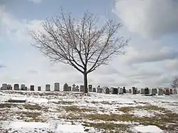 Mount Hope was created near the end of the 19th Century when the Archdiocese of Toronto was faced with a capacity issue at St. Michael's Cemetery. Land was found further north of Toronto and Mount Hope was consecrated on July 9, 1898, by Catholic Archbishop John Walsh.[1] The first burial occurred on March 27, 1900.[2] Within 50 years, Mount Hope was facing a capacity issue and in 1954 Holy Cross Cemetery, Thornhill, Ontario, opened to ease the burden on Mount Hope. With additional land added next to the property, Burke Brook Ravine was buried as storm sewer in 1960 (the ravine exists northeast of the cemetery through Sunnydene Park).[3]