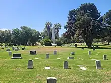 Founded in 1869 on what was then the outskirts of New Town, Mount Hope now covers approximately 115 acres (0.47 km2). Its design is an example of a rural cemetery, in architecture, art and landscaping.[1] The city of San Diego manages and maintains it, providing perpetual care to all burial sites. The rolling hills contain monuments to some of the city's most notable former residents.