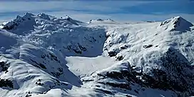 Mount Jimmy Jimmy is a 2,208-metre (7,244 ft) glaciated mountain located in the Coast Mountains in southwestern British Columbia, Canada. It is situated 32 kilometres (20 mi) northwest of Squamish, and 10 km (6 mi) northwest of Ossa Mountain, which is its nearest higher peak. Mt. Jimmy Jimmy is the highest point of the Tzoonie-Clowhom Divide.[2] Precipitation runoff from the peak and meltwater from its immense glaciers drains into tributaries of the Squamish River and Clowhom River. The mountain was named for Chief Jimmy Jimmy (native name Swahsh), a leader of the Squamish Nation, who had traplines in the vicinity of the mountain.[1][3][4] The mountain's name was officially adopted on June 6, 1957, by the Geographical Names Board of Canada.[5]