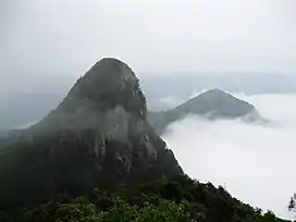 It bases at the east of Liuxi River National Forest Park.[1] The mountain was named of cockscomb for its summit and subpeak together looks like cockscomb in the distance. The subpeak, which rises to a height of 1,146.7 metres (3,762 ft) above sea level, is much more famous than the main peak. This results some people mistakenly used its height as the mountain's elevation.