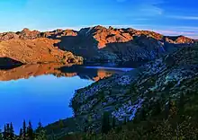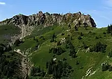 ![]() Southwest aspect, centered beyond St. Helens Lake (The Dome upper left) | |