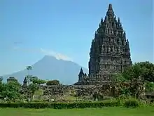 To keep the volcano quiet and to appease the spirits of the mountain, the Javanese regularly take offerings on the anniversary of the sultan of Yogyakarta's coronation.[55] For Yogyakarta Sultanate, Merapi holds a significant cosmological symbolism, because it forms a sacred north-south axis line between Merapi peak and Southern Ocean (Indian Ocean). The sacred axis is signified by Merapi peak in the north, the Tugu Yogyakarta monument near Yogyakarta main train station, the axis runs along Malioboro street to Northern Alun-alun (square) across Keraton Yogyakarta (sultan palace), Southern Alun-alun, all the way to Bantul and finally reach Samas and Parangkusumo beach on the estuary of Opak river and Southern Ocean.[56] This sacred axis connected the hyangs or spirits of mountain revered since ancient times—often identified as "Mbah Petruk" by Javanese people—The Sultan of Yogyakarta as the leader of the Javanese kingdom, and Nyi Roro Kidul as the queen of the Southern Ocean, the female ocean deity revered by Javanese people and also mythical consort of Javanese kings.[57]