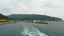 The western end of the mountain falls precipitously into Tokyo Bay, where Cape Myōgane (Japanese: 明鐘岬) is a good place to watch large ships pass through Uraga Channel at sunset.