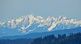 ![]() Mount Pershing (left) seen from West Seattle (Jefferson Peak to the right) | |