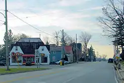 The main sawmill in the village was purchased by the Hallman family in 1944 and rebuilt after it had lain mostly idle for 22 years.[6]: 151 It burned down on October 15, 1984[16] and was still utilizing a water-driven turbine up to that point to provide one-third of its energy. The fire was likely caused by an electrical accident. A new facility was rebuilt on the outskirts of the village and started operations in March 1986.[17][18] The original sawmill was used for storage until the early 2000s when the remaining building was demolished and an inn[19] was built in its place. The area surrounding the inn features a river, a dam, a large waterfall and a forest with outcroppings of the Niagara Escarpment. The area is maintained in a picturesque condition and is considered a local tourist attraction. The waterfall is just one of many in Grey County.[20]